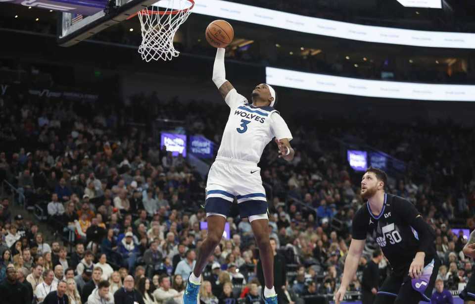 森林狼过去两场连续客场惜败火箭与马刺遭遇2连败,爵士过去4场遭遇4连败,本赛季前两次交锋森林狼均战胜爵士。本场森林狼缺少香农,爵士缺少凯斯勒、马尔卡宁、乐福、森萨博等。首节开局森林狼5-7落后,森林狼一波9-0攻势反超比分,贝利三分命中。森林狼一波7-0攻势扩大21-10领先,爵士内外开花回敬10-2攻势追分,森林狼连得5分继续扩大优势,爵士继续反扑追分,首节结束森林狼34-29领先爵士。首节森林狼23中14超过6成准星,其中三分10中4,爱德华兹6中4得到10分;爵士22中11,其中三分13中6,乔治8中4得到11分。